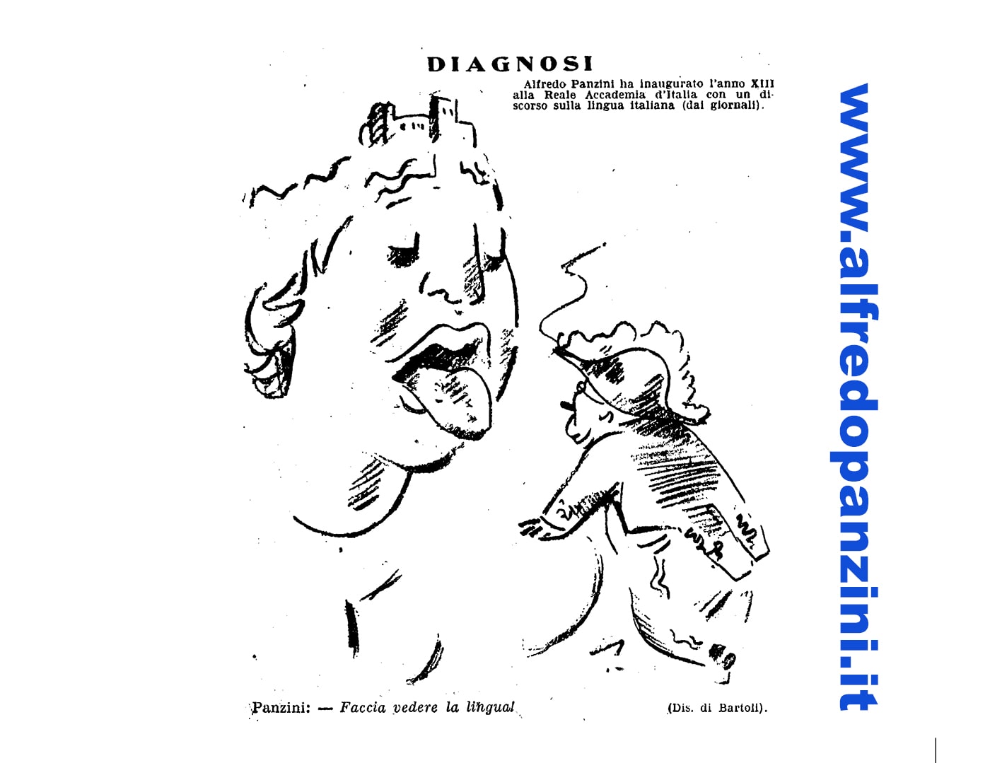 Il genere satirico fu molto amato da Panzini, che addirittura nel suo Il Conte di Cavour, che farà storcere il naso agli storici e che pubblicherà da Mondadori nel 1931 con notevole successo, inserì le feroci “caricature” del Fischietto, che andò a scegliere personalmente a Torino. La sua firma comparve qualche volta su Il travaso delle idee, dove fu non di rado anche bersaglio delle penne appuntite della redazione ma questo non gli impedì di dedicare loro una voce del Dizionario Moderno sin dal 1905: “Travaso (delle idee): per passaggio (influsso) dei pensieri da una in altra mente si dice talora per celia; e il vocabolo travaso, che è proprio de’ liquidi, acquistò tale nuovo e ridicolo senso da un povero onesto uomo, morto da poco in Roma, il quale aveva alcun splendore geniale fra molte stranezze e pazzie, Tito Livio Cianchettini. Costui componeva, stampava e vendeva un suo giornaletto intitolato II Travaso d’idee. Il primo numero vide la luce in Pavia il 16 agosto 1869″. Il lemma che occorre scandagliare con attenzione per cogliere l’umorismo di Panzini si trova proprio sul Dizionario: “humour” (in fondo a questo articolo), manifesto del suo pensiero sulla materia ma anche del suo modo di concepire la vita e le lettere: Lo humour “è la speciale disposizione che un’alta intelligenza (per lo più artistica) ha nel penetrare facilmente, sottilmente insino al fondo occulto delle cose, vedere le fronde e le radici, la scena e il retro-scena: quivi le cose umane appaiono ben diverse e ben diversamente congiunte che non siano nell’apparenza: ciò che alla superficie è comico, al fondo può essere tragico, e viceversa”.