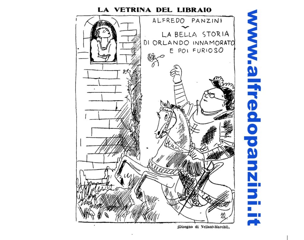 Il suo Panzini è tutt’uno con alcune delle opere che ha pubblicato perché si è occupato di lui per il “lancio” di libri usciti da Mondadori: La bella storia di Orlando innamorato e poi furioso e Rose d’ogni mese nel 1933 sulla «Gazzetta del Popolo». Il Panzini accademico (dal 1929) è ormai il contrassegno peculiare del personaggio, che infatti viene raffigurato anche da Vellani Marchi con la feluca e la caratteristica uniforme.